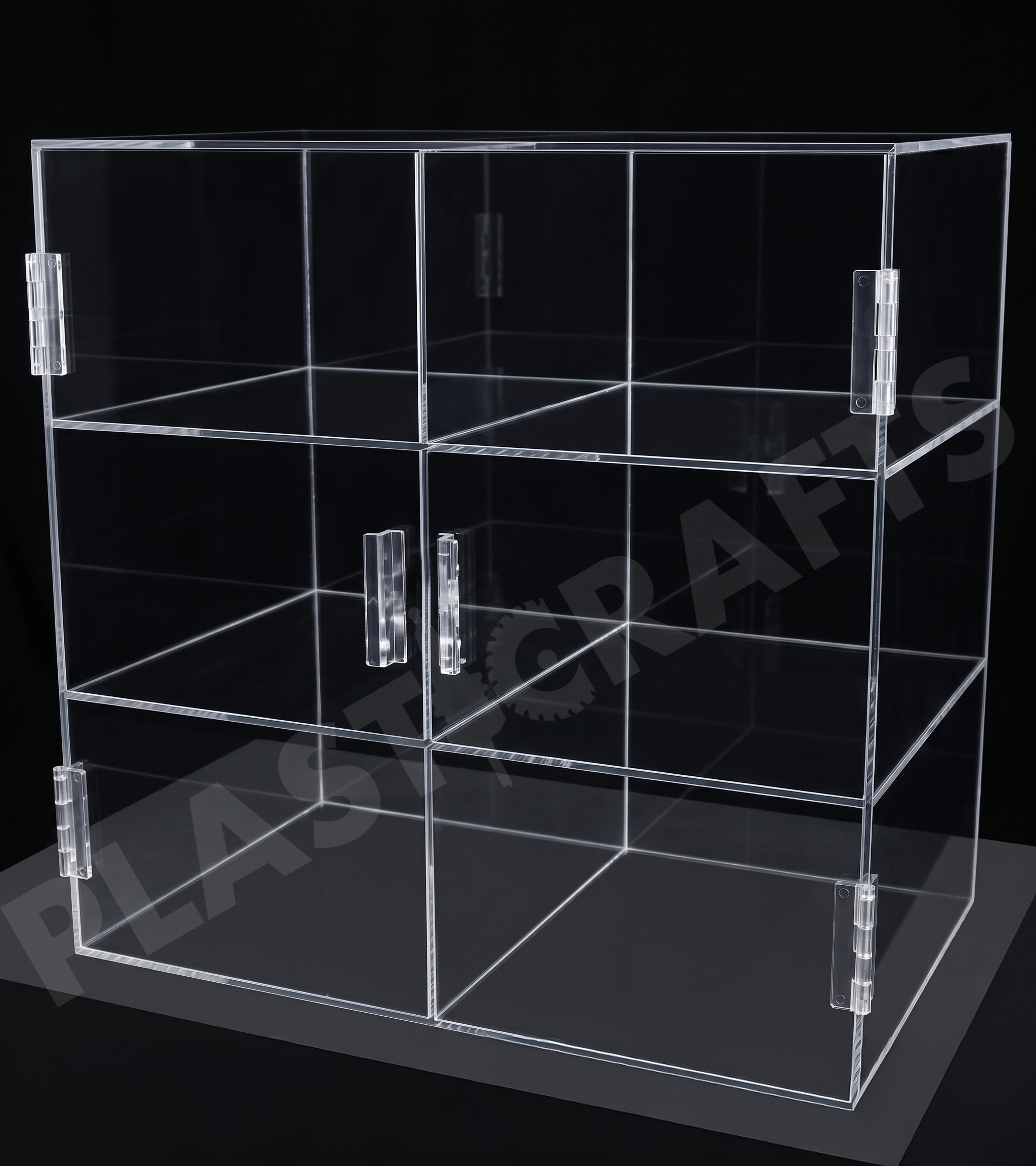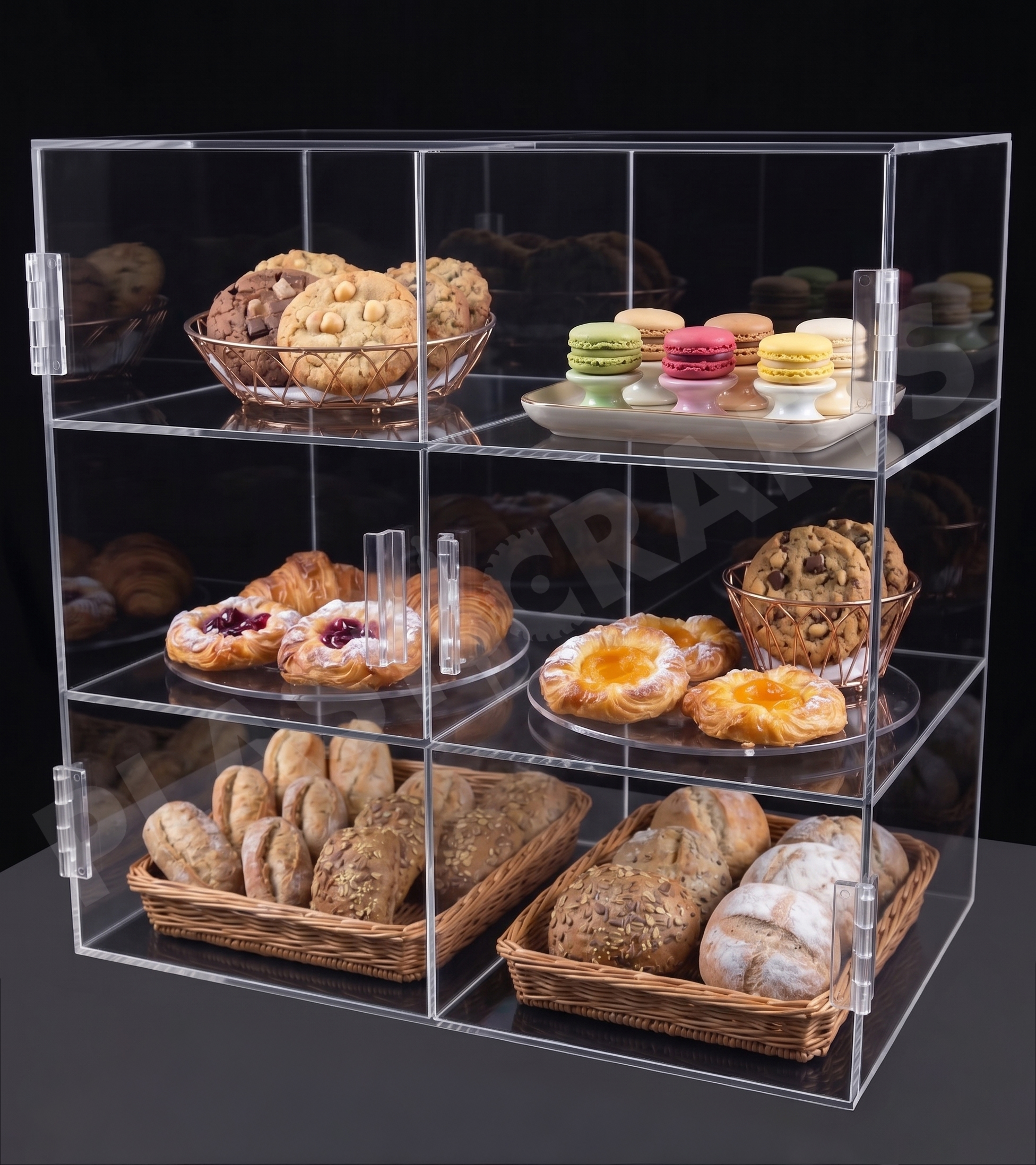 This acrylic bakery display is manufactured from high-quality 3/16″ thick clear acrylic, providing durability, clarity, and a clean professional presentation. Proudly made in Redford, Michigan, USA, this unit is built for long-lasting commercial use in bakery and retail environments.
