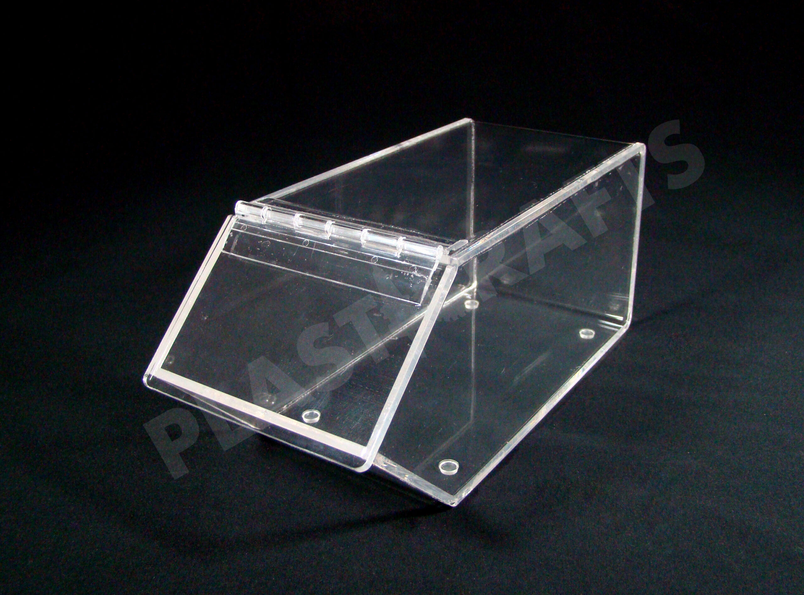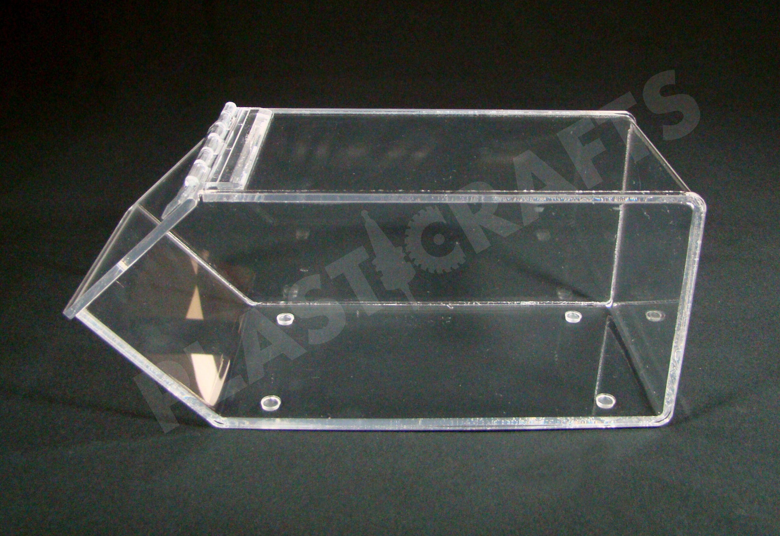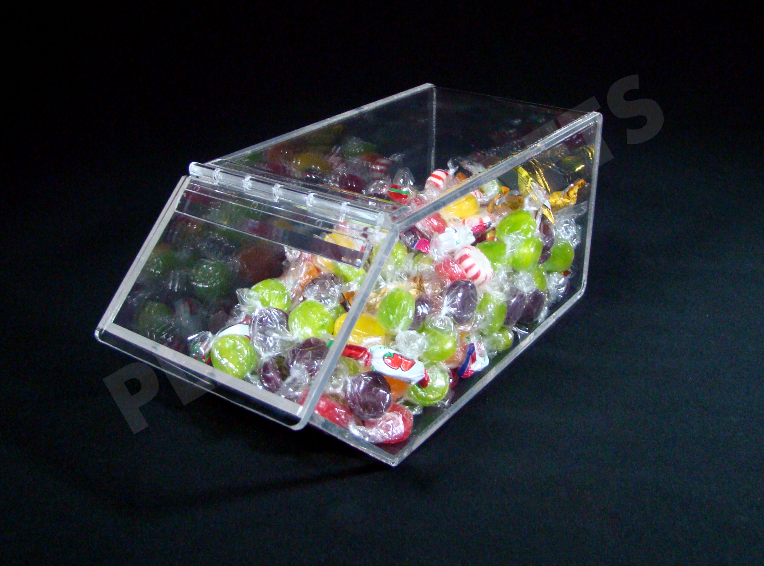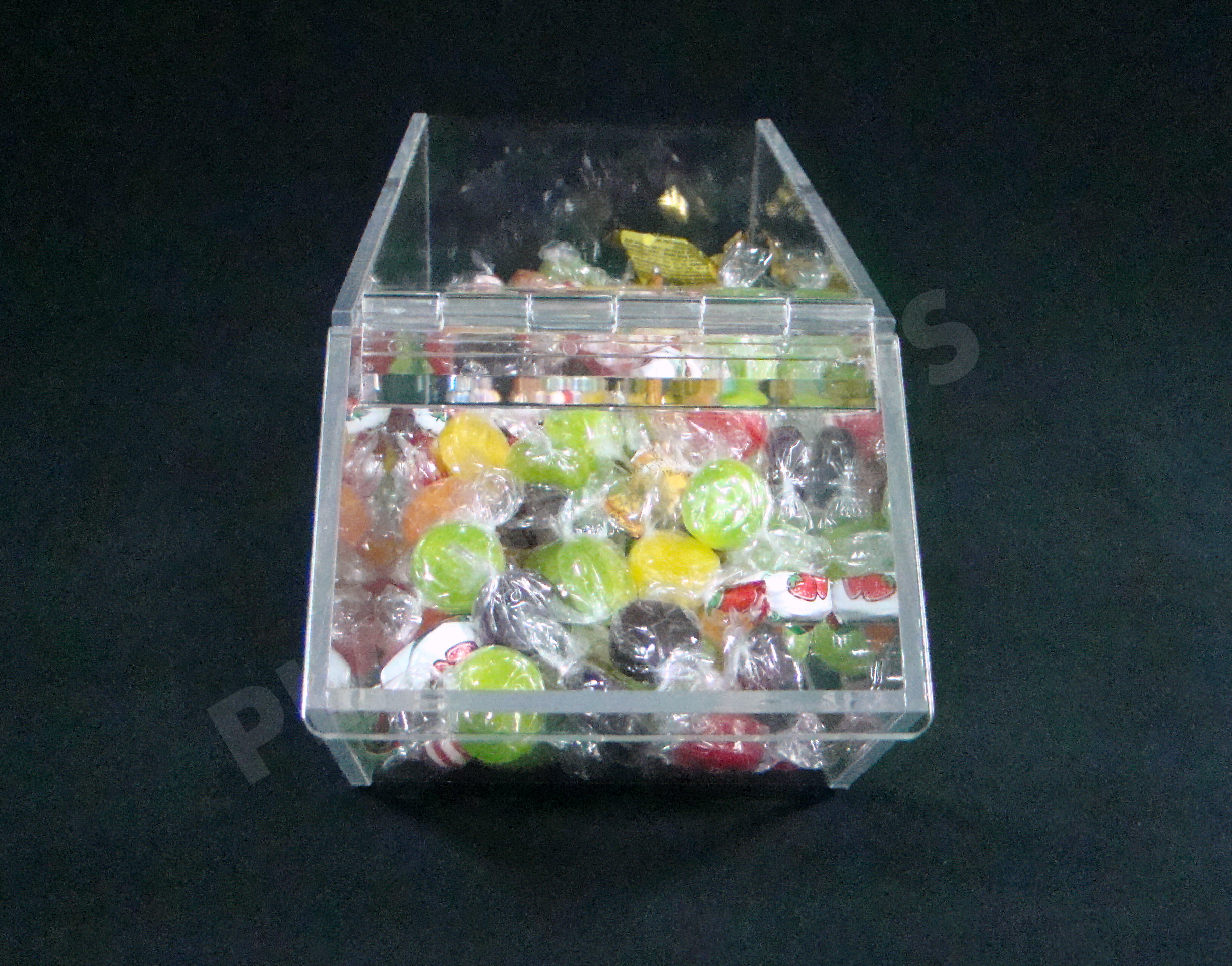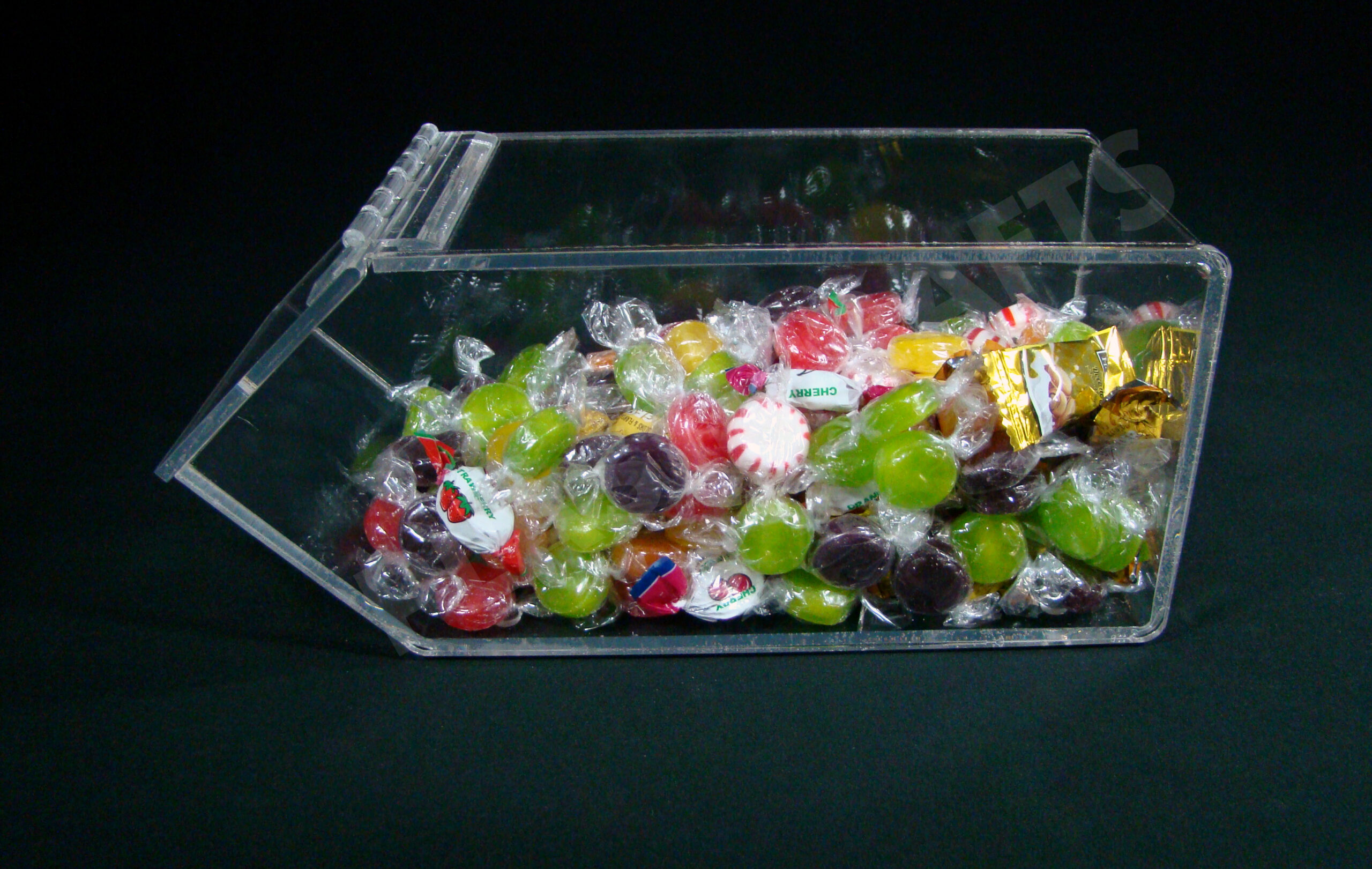 This stacking candy bin is made from 3/16″ thick clear acrylic/plexiglass. We use top of the line plastic to manufacture these bins in Redford, MI USA. This bin holds approximately 6 lbs. of candy.