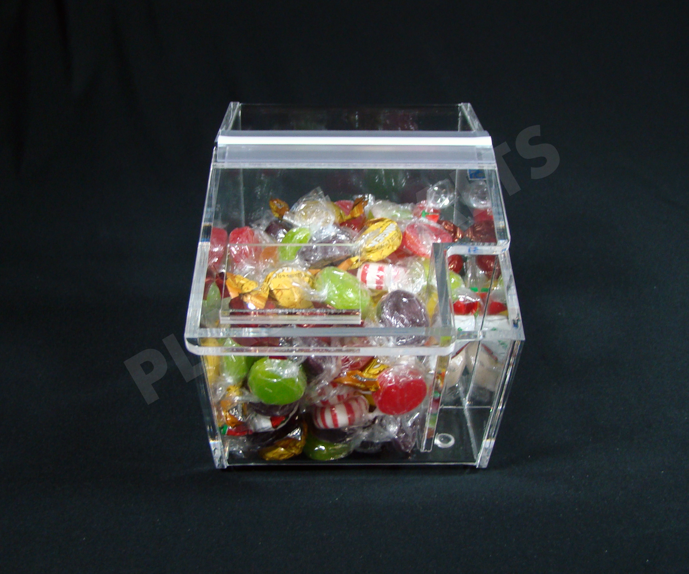 This candy bin is made from 3/16″ thick clear acrylic. We use top of the line plastic to manufacture these bins in Redford, MI USA. This bin holds approximately 3 lbs. of candy.
